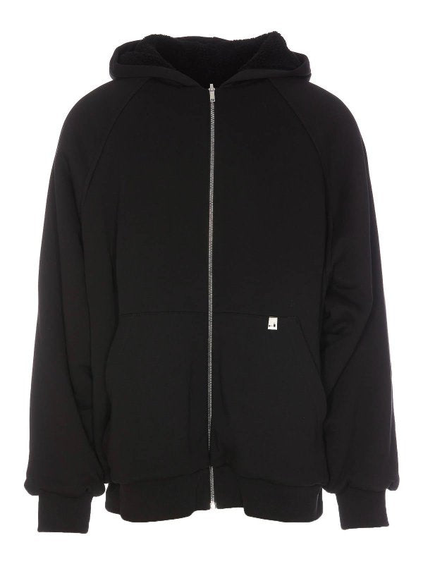Giacca nera in teddy con tasche con zip e cappuccio Taglia in foto: M